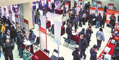 昨日,西青区紧抓复工复产关键期,在区人力资源服务产业园智能大厦举办春节后首场大型线下招聘会。 记者 潘立峰 摄