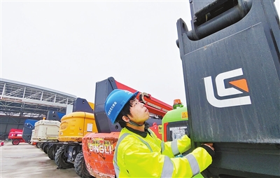 昨日,中国铁建大桥局施工人员在空客天津A320系列飞机第二条总装线建设现场对施工设备进行开工前“体检”。 记者 张磊 摄