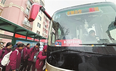昨天,伴随新学期开学,天津公交第三客运公司开通3条美达菲学校护学定制专线,加上此前已开通运营的45条通学线路,市公交集团运营的通学公交线路共达48条。 记者 苏晓梅 通讯员 李博瑶 摄影报道