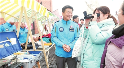 在“学雷锋纪念日”到来之际,河北区委社会工作部举办学雷锋主题志愿服务活动。现场开展健康义诊、政策咨询、普法宣传、爱心帮扶、文明宣讲等多项便民服务。 记者 吴迪 摄
