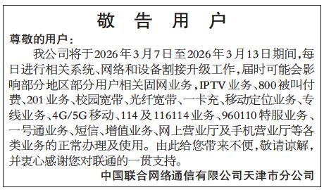 天津日报所有作品,版权均属于天津海河传媒中心,受《中华人民共和国著作权法》的保护。所有关于天津日报内容产品的数字化应用,包括但不限于稿件签约、网络发布、转稿等业务,均需与天津海河传媒中心商谈,与天津海河传媒中心有互换稿件协议的网站,在转载数字报纸稿件时注明“来源-天津海河传媒中心天津日报”和作者姓名,未与天津海河传媒中心有协议的网站,谢绝转稿,违者必究。