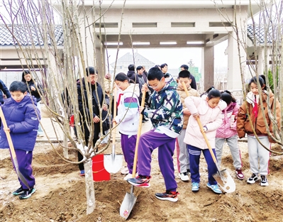 在纪念馆红色文化长廊南侧,更是一派生机勃勃景象,周恩来侄女、南开大学周恩来研究中心特约研究员周秉宜,以及津门学子和众多纪念馆工作人员一起在这里栽植海棠树。南开区“延安精神薪火相传”红领巾巡讲团的孩子们,还把取自延安的土壤和取自南开大学、南开中学等十几所学校校园的土壤汇聚在一起,撒在南开育棠园的沃土之中,以表达对周总理的深切缅怀,传递“为中华之崛起而读书”的信念。跨越时空的精神共鸣,也在后辈心中扎根。小学生李美信说:“周总理一生不忘初心、坚守信仰,是我们心中的榜样。我们要把对周总理的崇敬之心化作好好学习的动力,争做德智体美劳全面发展的新时代好少年。”