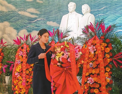 昨日上午,周恩来邓颖超纪念馆瞻仰厅里庄严肃穆又充满温情。伟人汉白玉雕像前,不断有观众向雕像行礼、献花,表达对伟人的追思与敬仰。“80后”观众潘真真对记者说:“我是听着周总理的故事长大的,他一生全心全意为国为民,他的故事和精神也深深影响着我、鼓舞着我。如今的幸福生活离不开先辈们的无私奉献与艰辛付出,所以我特意在周总理诞辰纪念日来纪念馆表达敬意。”