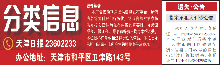 平媒总编室:022-23602716 中心办公室:022-23602888 海河传媒广告有限公司:022-23602233