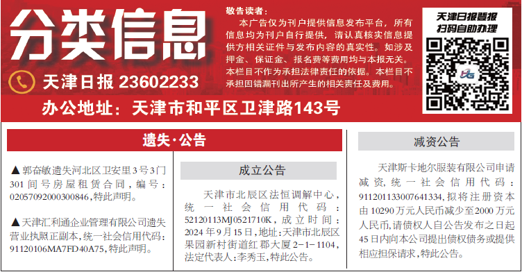 平媒总编室:022-23602716 中心办公室:022-23602888 海河传媒广告有限公司:022-23602233