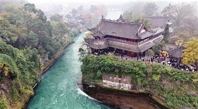 这是2025年12月6日拍摄的四川都江堰宝瓶口(无人机照片)。 新华社记者 刘坤 摄