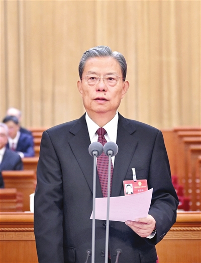 赵乐际指出,各位代表肩负党和人民重托,认真履行法定职责,审议批准政府工作报告等报告,审查批准国民经济和社会发展第十五个五年规划纲要和年度计划、预算,审议通过生态环境法典、民族团结进步促进法、国家发展规划法,会议成果体现了党的主张和人民意志的高度统一,彰显了在以习近平同志为核心的党中央坚强领导下团结奋斗、与时俱进把强国建设、民族复兴伟业不断推向前进的坚定信心和磅礴力量。