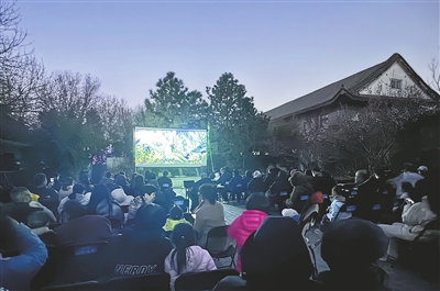 3月16日,天津运河桃花节期间,西沽公园首次推出露天电影公益放映活动,吸引众多市民游客驻足观看。夜幕下,市民在烂漫桃花旁沉浸式观影,现场氛围温馨热闹。此次活动丰富了桃花节夜场文化体验,让市民在赏花之余感受光影魅力,点亮春日夜间文旅生活。 记者 孙志强 摄