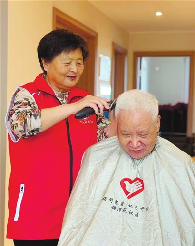 “大爷,您坐好,我慢慢给您剪,保证剪得精神利落。”几天前,社区志愿者杜文英背着工具包,走进锦泽苑社区老人王郁的家中,熟练地拿出剪刀、推子,一边和老人唠着家常,一边细致地修剪头发。