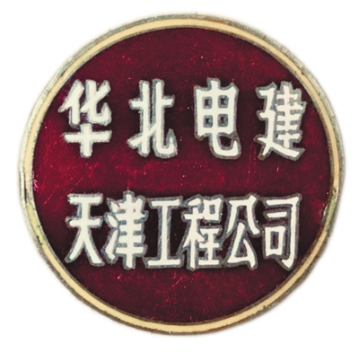 以华北电力建设公司天津工程公司(简称“天津电建”)的厂徽为例,可看出其承载的特殊历史价值。据在天津电建工作的收藏家张辉先生介绍,在该企业六十余载的发展历程中,曾三度制作和发行过厂徽。1964年,由天津第四基建工程处等四单位合并组建的华北电力建设公司天津工程公司正式成立,并于5月4日在第二工人文化宫召开成立大会,这一天被定为天津电建的成立日。这一合并重组,旨在整合华北资源、优化区域布局。根据华北电力建设公司要求,天津电建制作了第一枚厂徽。这枚厂徽直径35毫米,材质为锌铜合金,以深红色为背景,搭配乳白色字体,简洁而醒目,铭文为“华北电建天津工程公司”,背面有五位阿拉伯数字编号。