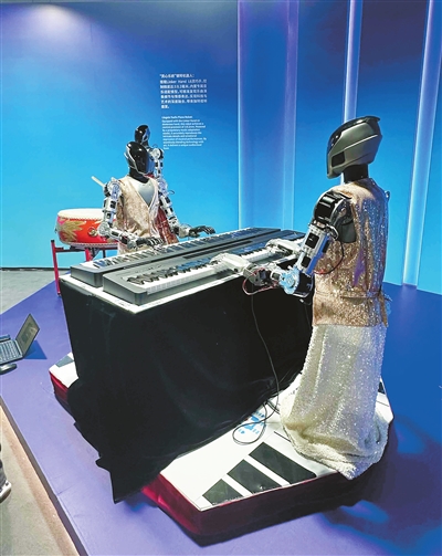 “灵心乐府”钢琴机器人也是一大亮点。机器人双手起落,准确、快速、有力地敲击琴键,悠扬的音乐响起,旋律流畅有力,科技与艺术在此刻完美交融。