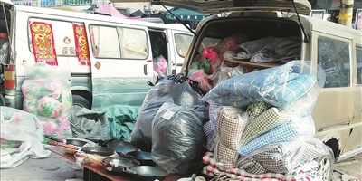 5辆“僵尸车”的后备箱盖全部打开,车厢里装满各种货物,车尾处也摆放着商品,售卖土产百货、水果蔬菜。摊主们在车旁或坐或站,不停吆喝。住在附近西关北里小区的李女士告诉记者:“这几辆‘僵尸车’长年停在人行道上,摊主白天从车上搬货占道经营,晚上收摊就把货物存放在车里。‘僵尸车’成了他们赚钱的工具,影响路人正常通行,希望有关部门尽快治理。”