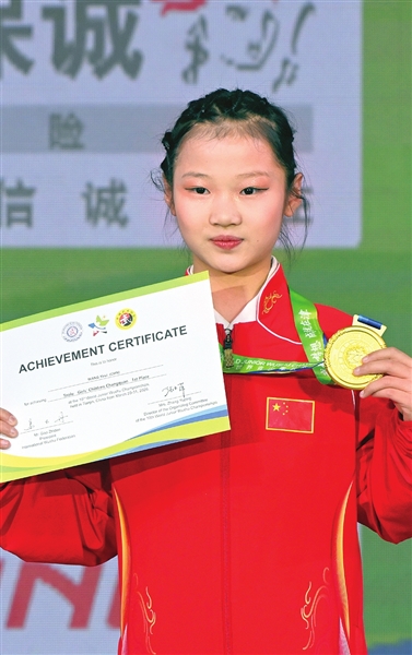 在随后进行的女子儿童组(11岁及以下)长拳比赛中,中国队小将王艺芮以8.550分的优异成绩夺冠。她的长拳动作规范舒展,弓步、马步扎实稳健,腾空跳跃动作轻盈流畅,整套演练一气呵成,完美展现了儿童组选手的活力与技术功底,为中国队再添一金 。