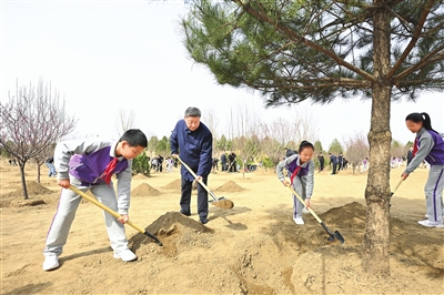 在京中共中央政治局委员、中央书记处书记、国务委员等参加植树活动。