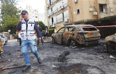 3月31日,在以色列中部城市佩塔提克瓦,应急反应人员在导弹袭击现场开展工作。