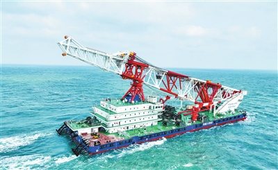 日前,由驻津央企中国铁建大桥局投资建造的全球最大打桩船“铁建大桥桩1”号在江苏南通正式交付,标志着我国在海洋工程装备制造领域实现新突破。该船总长130.5米,宽40.8米,型深8.4米,桩架高度156米,可打直径7米、桩重700吨的桩基,作业水深达70米,是目前世界上桩架最高、吊桩能力最大、作业水深最深的打桩船。