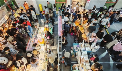 市集上,年轻人的身影随处可见。他们或三两结伴,在摊位前精挑细选;或对着老厂房拍照打卡,在社交媒体上分享自己的“宝藏发现”。