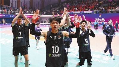 在3月29日进行的首回合比赛中,天津男排以3:2击败对手,在三场两胜制的冠军争夺战中抢占先机。昨晚的比赛,天津男排延续了上场比赛的首发阵容,二传位置派上了队长毛天一,薛智鸿、拉扎尔搭档主攻线,王昌利、陈龙海联手副攻线,接应是亚历杭德罗,自由人为陈嘉杰。