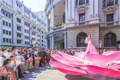 清明假期,和平区大理道沿线海棠主题彩绘与实景繁花相映成趣,金街主题快闪等特色活动轮番上演,吸引众多游客前来。