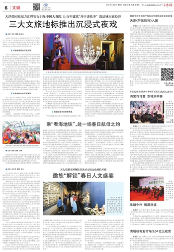 三大剧目各具特色,却共同构建起“历史场景+互动体验+文化内涵”的独特模式。从张园的洋楼探案到原东方汇理银行的浮华博弈,再到中国大戏院的梨园奇遇,天津春季沉浸式夜游戏剧让百年建筑“开口讲故事”,既满足了市民高品质文化消费需求,又以强社交属性吸引游客打卡,带动周边产业发展,有效延长夜间消费链条,为城市夜间经济注入持久活力。