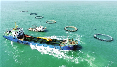 4月10日,山东青岛西海岸新区鲁海丰海洋牧场2026年首批10万尾鱼苗投入深水网箱进行养殖。据悉,青岛鲁海丰海洋牧场地处国家一类水质海域,水温适宜、盐度均衡,比较适宜海鱼生长。 新华社发