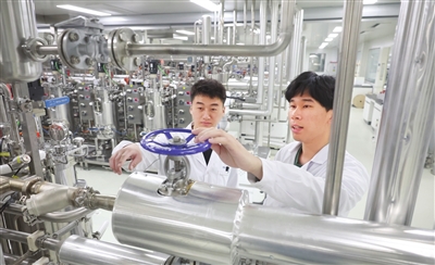 天津赫莱恩特生物科技有限公司研发人员在天津大学合成生物前沿研究院进行实验。 记者 姜宝成 摄