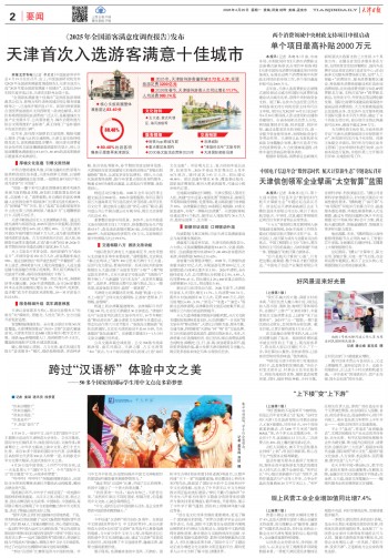 本报北京专电(记者 廖晨霞)中国旅游科学年会4月19日在京召开,会上,中国旅游研究院发布《2025年全国游客满意度调查报告》,天津市成功入选“2025年度全国游客满意十佳城市”,这是自2010年按年度评选以来,天津首次跻身全国十佳。
