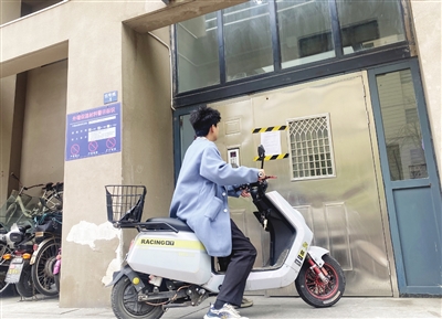 “电动自行车禁止入内!”4月16日下午,河西区东海街云江新苑社区15号楼门前,一名男子推着电动自行车用电子钥匙开门,门未打开,电子锁发出语音提示。男子随即调转车头,将车推向集中充电车棚。