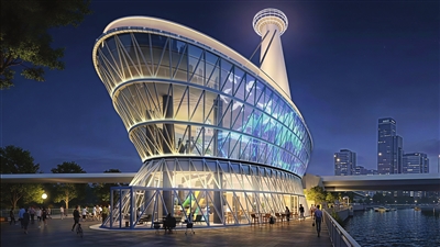 远,可观赤峰桥焕新夜景,流光溢彩映海河;近,可享左岸空间潮流社交,松弛有格调;上,可登船形“甲板”露台,尽览海河风光;下,可至河岸亲水平台,临水听澜。昼看河城相映,夜赏灯火璀璨……津旅左岸空间依托桥身的船形建筑,融合特色文创、轻食简餐、户外演艺等业态,搭配不定期主题策展与潮流活动,将打造契合时尚审美、承载城市记忆的海河沿岸复合型文旅新空间。“一层业态为文创零售,二层业态为咖啡轻食,三层甲板业态为音乐酒吧。”津旅海河商管公司副总经理刘浩介绍,“我们希望通过打造层次分明、特色鲜明的消费场景,让游客在‘远、近、上、下’的移步换景中,沉浸式感受海河灵动风情,寻觅专属城市记忆。”