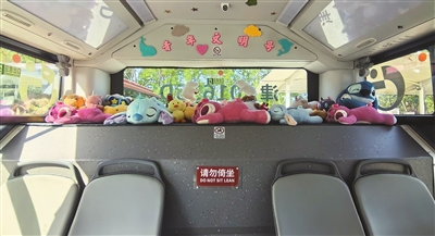 “妈妈,我要坐这辆车!”这是655路公交车青年文明号驾驶员穆怀靓经常听到的一句话。车辆刚刚换上“春装”,就时时处处为带娃出行的家长提供便利。655路公交车从海河教育园一号公交站开往文化中心公交站,周末很多家长坐车带孩子去科技馆、文化中心游玩。“低龄孩子坐车,难免烦躁。我们这辆车的车厢顶部被装饰成了星空风格,吸引孩子的注意力,激发孩子的探索欲,让孩子上车就能有事可干。”穆怀靓告诉记者。车厢尾部还有专门的毛绒玩具区,家长可以拿这里的毛绒玩具安抚吵闹的孩子。上车时有温馨提示语,椅子边有可以挂杂物的卡通挂钩,车厢里的扶手等都是浅蓝色,整辆车的风格特别萌趣、温馨,大人和孩子都很喜欢。“这辆公交车很有特色,很有意思!”经常有乘客把这辆有童趣的公交车发到社交网络“点赞”。