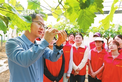 时下正值葡萄开花授粉关键期,天津农学院姜建福研究员带领学生,在西青区张家窝镇七仙女葡萄科技小院的高温大棚内,手持镊子为葡萄花去雄,授以目的花粉,然后套袋标记。这个建在田间的科技小院,既锻炼了学生的实践能力,也为周边农户解决技术难题。