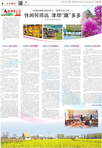 春深日暖,津沽大地生机盎然。这个“五一”假期,乡村被赋予了更丰富的内涵,它不仅是踏青旅游的休闲胜地,更是融合慢生活与烟火气的多维生活场景。从静态的“一处美”,到动态的“全域活”,一场场融合乡土气息与时代潮流的农文旅大戏即将“开演”。从市农业农村委获悉,今年“五一”假期,全市共策划推出100余场“农文旅+”活动,涵盖田园采摘、非遗体验、生态研学、体育赛事、乡土美食等,以“一村一品”“一村一韵”“一村一趣”的差异化体验,将绿水青山转化为市民可触可感的假日盛宴,全面展现天津乡村振兴的活力图景。
