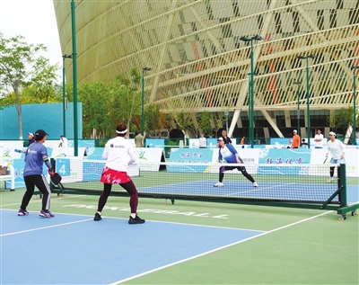 “五一”前夕,在团泊健康城网球中心的硬地球场上,清脆的“砰、砰”声此起彼伏。场地上,运动员们手持球拍,在场区内快速移动。“好球!”随着一记贴网而过的精准吊球落地,观众席爆发出一阵喝彩。选手得分后的击掌声,观赛群众的阵阵叫好声,伴着球体的撞击声,在团泊湖畔的上空交织成一曲独特的运动交响。