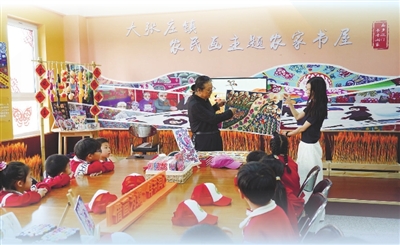 不久前,全市首个农民画主题农家书屋落户大张庄镇。走进书屋,墙面装点着色彩明快、乡土气息十足的农民画,这些画作反映了田垄劳作、村居烟火、乡野童趣等鲜活场景,没有传统书屋的沉闷,满是灵动的艺术氛围。